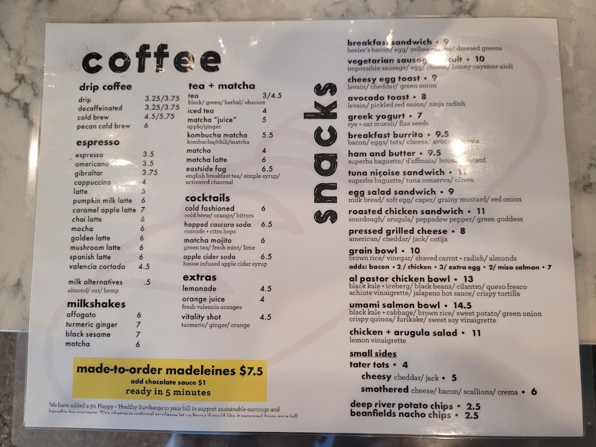Welcome to Superba Snacks Coffee, a delightful haven located at 712 S Arroyo Pkwy in Pasadena, CA. This charming eatery presents a thoughtfully curated menu that blends warm pastries and wholesome meals, perfect for any time of day.